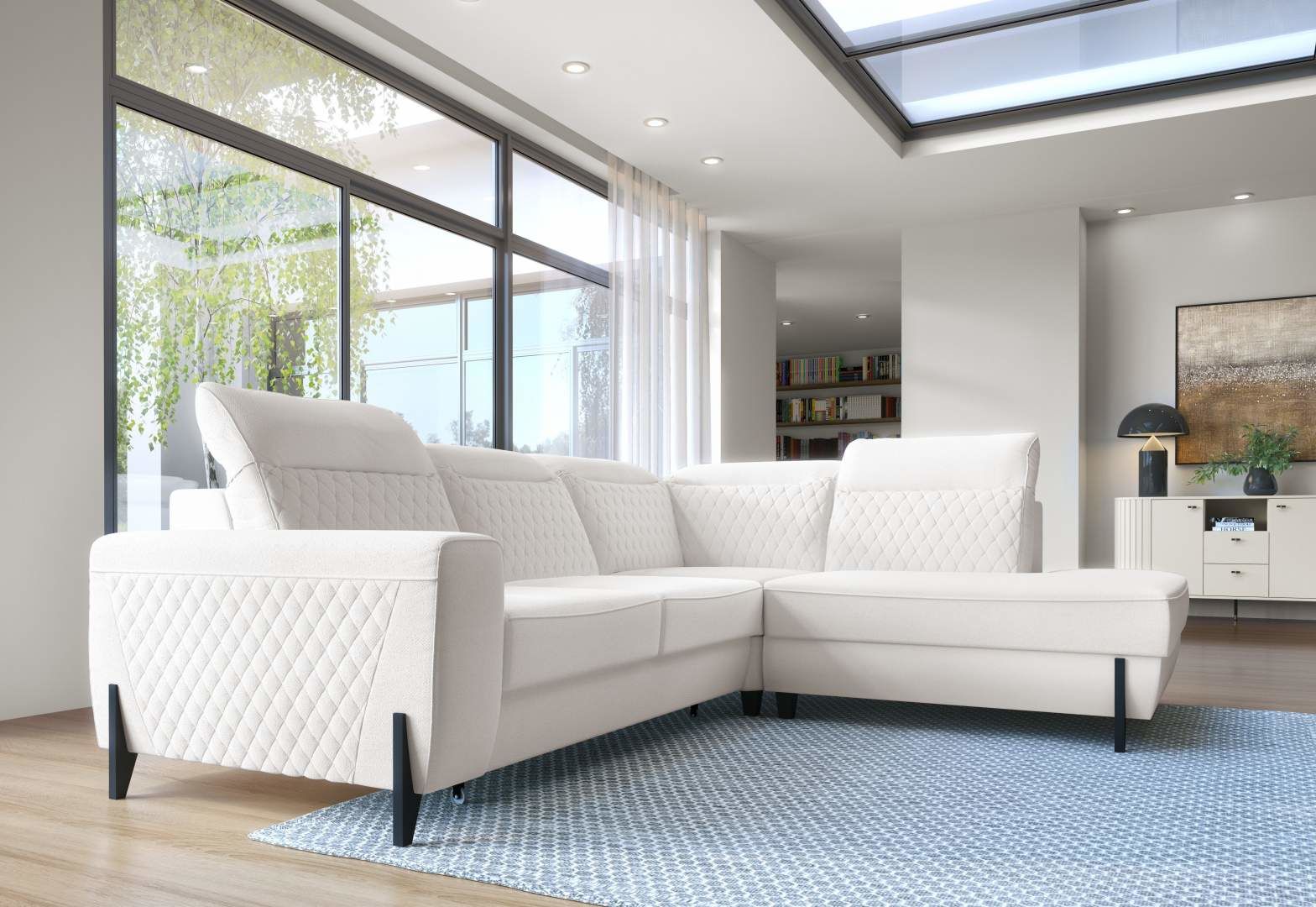 Rozměry: 269 x 226 x 85/104(šířka x hloubka x výška)