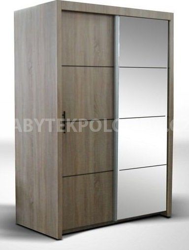Šatní skříň se zrcadlem PESSO 120 - je vyrobená z kvalitního lamina s posuvnými dveřmi v atraktivních barevných dekorech wenge anebo dub sonoma.