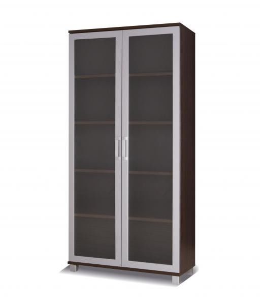 Vitrína MAT22 s dvířky z matového skla a aluminuovým rámem