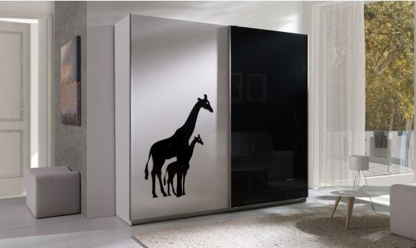 ŠATNÍ SKŘÍŇ TVISTER žirafy - vyrobená z lamina tl.16 mm s ABS hranou a posuvnými dveřmi s kováním Hettich. V moderní černo - bílé barevné kombinaci.