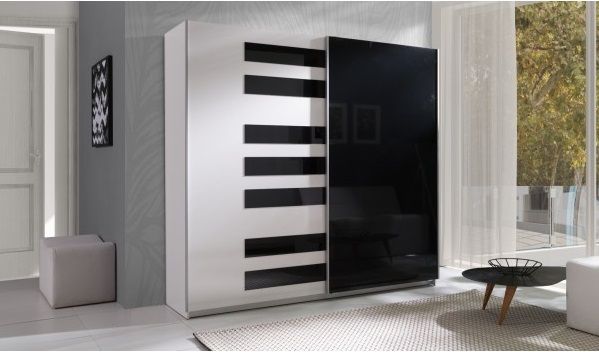 ŠATNÍ SKŘÍŇ TVISTER piano - vyrobená z lamina tl.16 mm s ABS hranou a posuvnými dveřmi s kováním Hettich. V moderní černo - bílé barevné kombinaci.