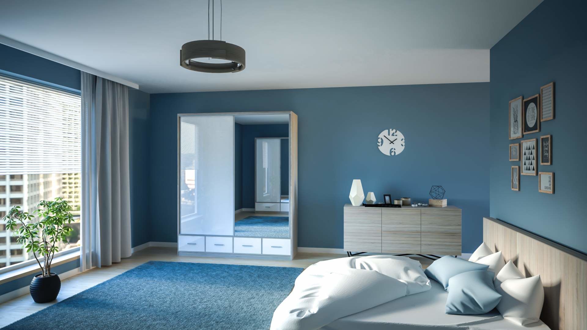 Šatní skříň LOPEZ 200 - Moderní šatní skříň je vyrobená z lamina s posuvnými dveřmi a tichým dojezdem.