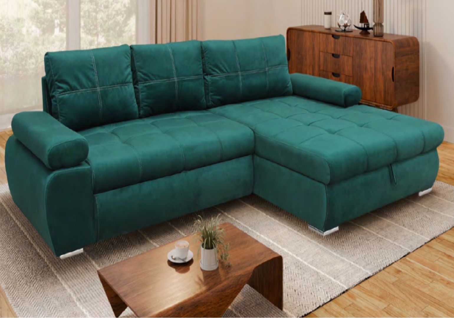 Sedací souprava BREVA - je luxusní pohodlná sedací souprava s úložným prostorem a možností rozkladu na lůžko 230 x 160 cm. Široký výběr potahových látek.