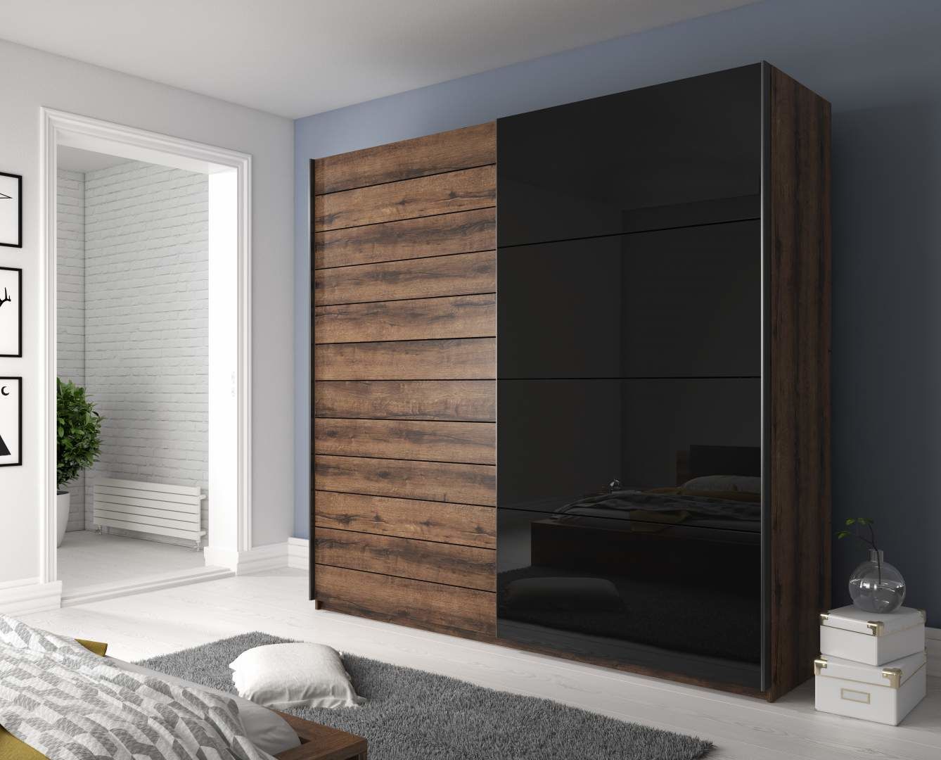 Šatní skříň GALAXY Dub Monastery/ Dub Monastery - černý lesk