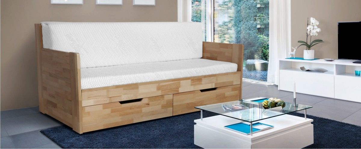 V dětském pokoji nesmí chybět dostatek místa pro spánek a odpočinek. K tomu účelu poslouží kvalitní postel vyrobena z výběrového masivu buku. Tento stylový nábytek je vyroben z kvalitního masivu se zdravotně nezávadnou povrchovou úpravou, masiv zajistí optimální nosnost a stabilitu. Masivní nábytek se snadno čistí a je nenáročný na povrchovou údržbu. Díky výběru barevných variant je tento stylový nábytek vhodný pro dívky i chlapce. Jednoduchý a svěží design tohoto dětského nábytku oživí každý pokoj. Dětská postel je opatřena přistýlkou. Pod lůžkem přistýlky naleznete úložný prostor, který se otevírá jednoduchým vysunutím. V ceně je zahrnutý rošt na obou lůžcích. Matraci na hlavní lůžko a přistýlku je třeba dokoupit.