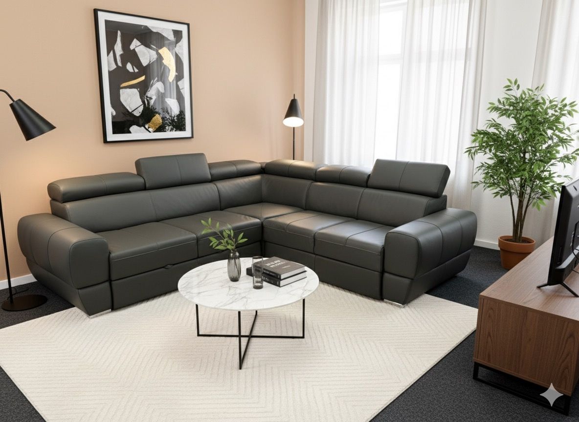 Sedací souprava VENNTO 2 - tm. šedá kůže - VÝSTAVNÍ KUS