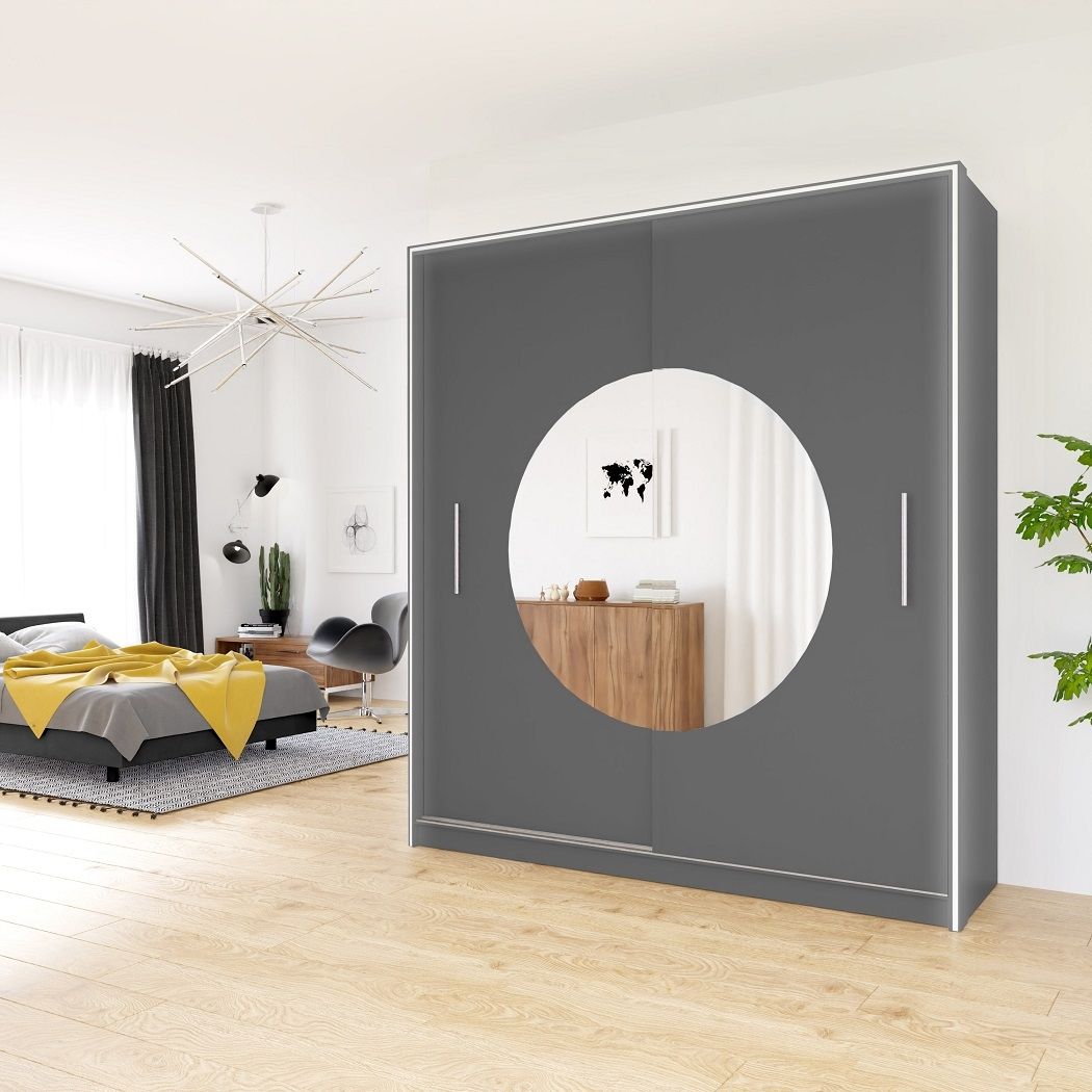 Šatní skříň MOON - je vyrobená z lamina a zrcadlem na posuvných dveřích s kováním sevroll a tichým dojezdem. LED osvětlení lze objednat za příplatek.