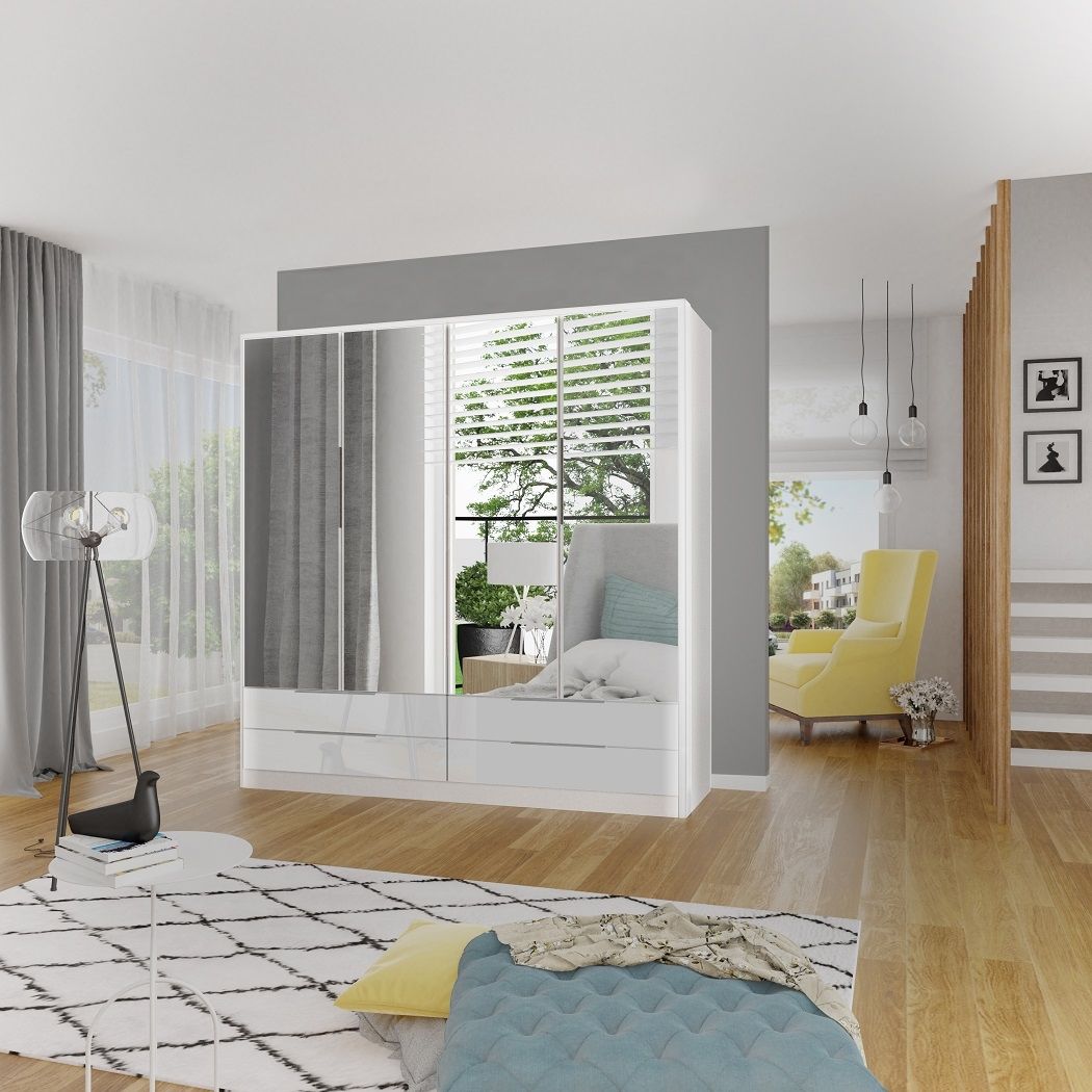 Šatní skříň JASMINE - je vyrobená z lamina ve dvou barevných dekorech ve vysokém lesku. Ve standardním vybavení skříně je LED osvětlení.