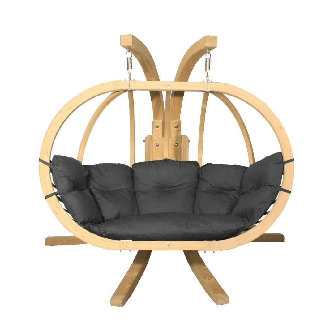 Závěsné dvojkřeslo z masivu - je designové závěsné křeslo vyrobeno z ohýbaného smrkového masivu. Polstrování je v několika moderních barevných odstínech látky. Ke křeslu náleží také houpací lehátko ze stejné kolekce.