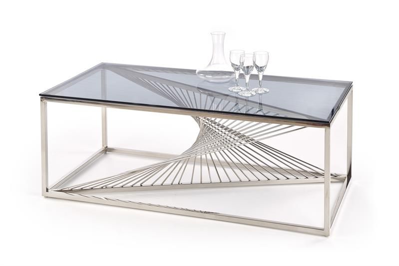 Konferenční stolek nadčasového designu. Stolek je vyroben v kombinaci dýmové skleněné desky a noh ze stříbrné chromované oceli. Tento moderní konferenční stolek je vhodný do stylových interiérů, obývacích pokojů nebo pracoven.