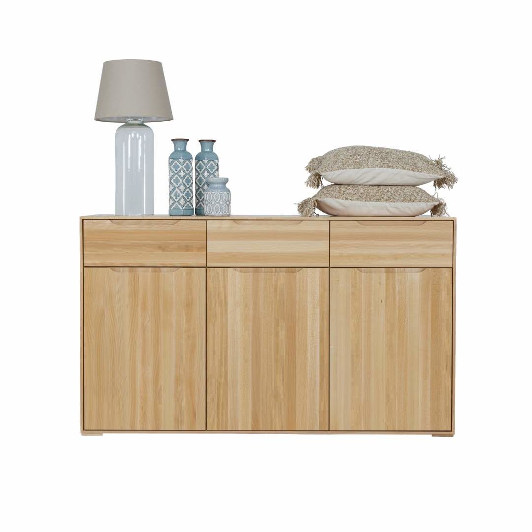 Komoda z masivu je určena pro milovníky přírodních materiálů, především kvůli svému jednoduchému elegantnímu designu. Vyrábí se z kvalitního precizně zpracovaného masivu buku. Barvu masivního buku je přírodní nebo několika krásných barevných odstínech. Komoda má moderní design a lze vybírat ze tří typů nožiček. Minimalistický design komody je vhodný do každého interiéru.