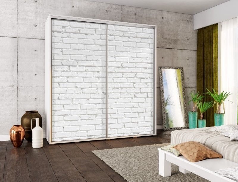 ŠATNÍ SKŘÍŇ PEM 205 Bílá zeď vyrobená z lamina tl. 22 mm s ABS hranou a posuvnými dveřmi s kováním SEVROLL. Barevné dekory bílý, dub sonoma, švestka a wenge.