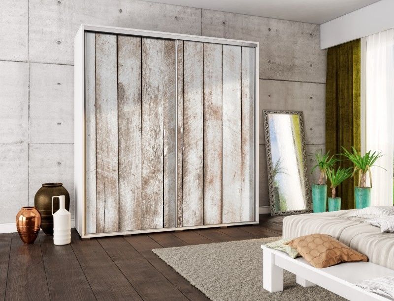 ŠATNÍ SKŘÍŇ PEM 205 Bílé dřevo vyrobená z lamina tl. 22 mm s ABS hranou a posuvnými dveřmi s kováním SEVROLL. Barevné dekory bílý, dub sonoma, švestka a wenge.