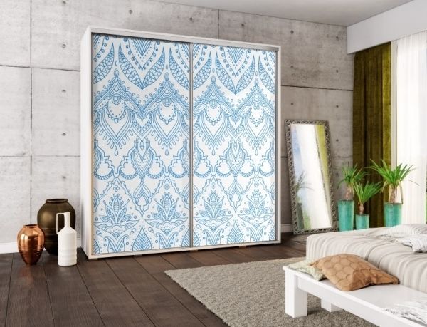 Šatní skříň PEM 205 Ethnic je vyrobena z lamina tl. 22 mm s ABS hranou a posuvnými dveřmi s kováním SEVROLL. Barevné dekory bílý, dub sonoma, švestka wallis a kaštan wenge.