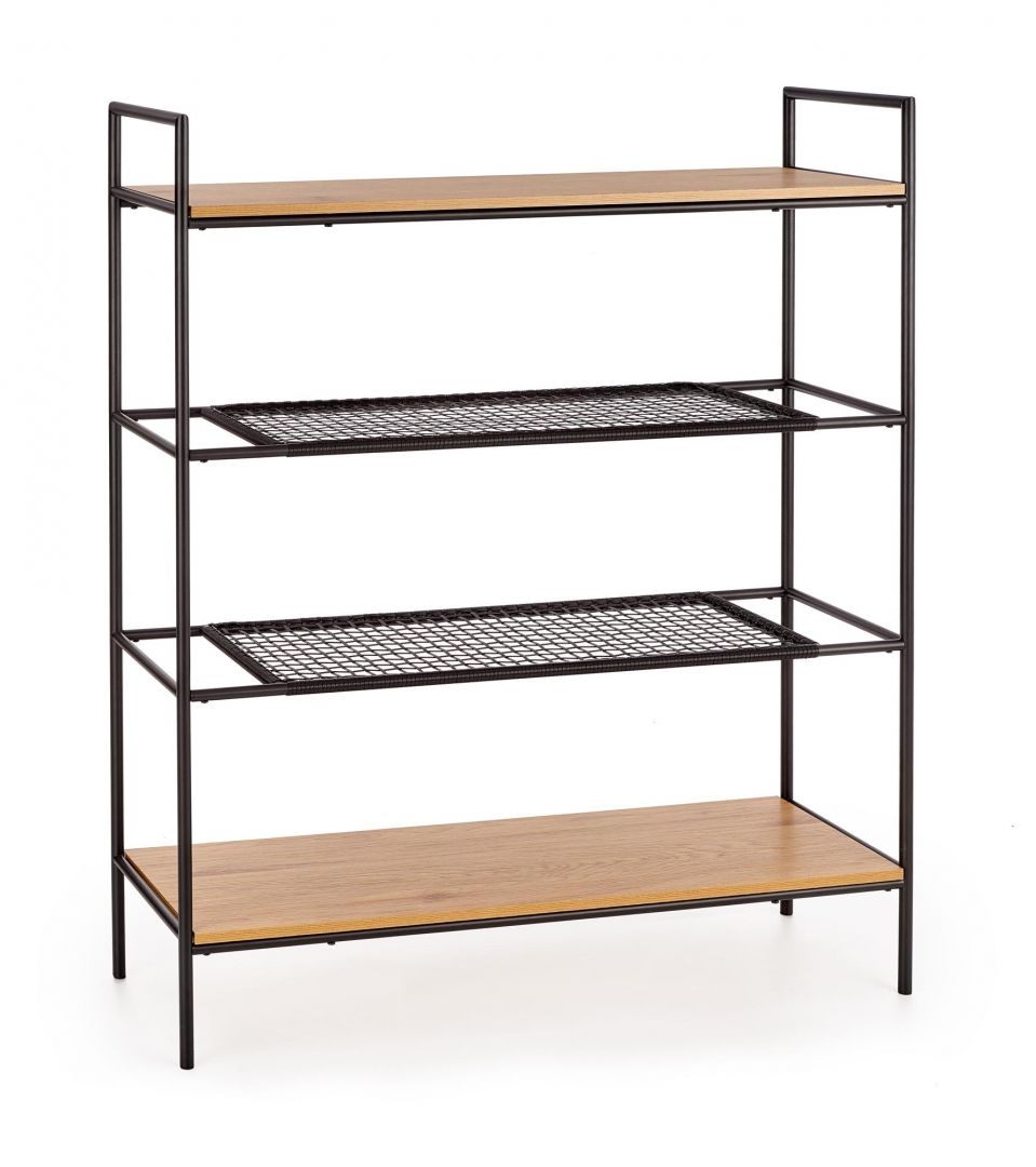 Regál REG-21 je vyroben z černé ocelové konstrukce a polic z umělého ratanu a z MDF desek v barvě zlatý dub. Regál je rozdělen do 4 úložných polic, ve kterých si můžete vystavit nejrůznější předměty, hračky, knížky. Regál je vhodný nejen do dětských pokojů, ale i do ložnice, obývacího pokoje a do jiných interiérů.