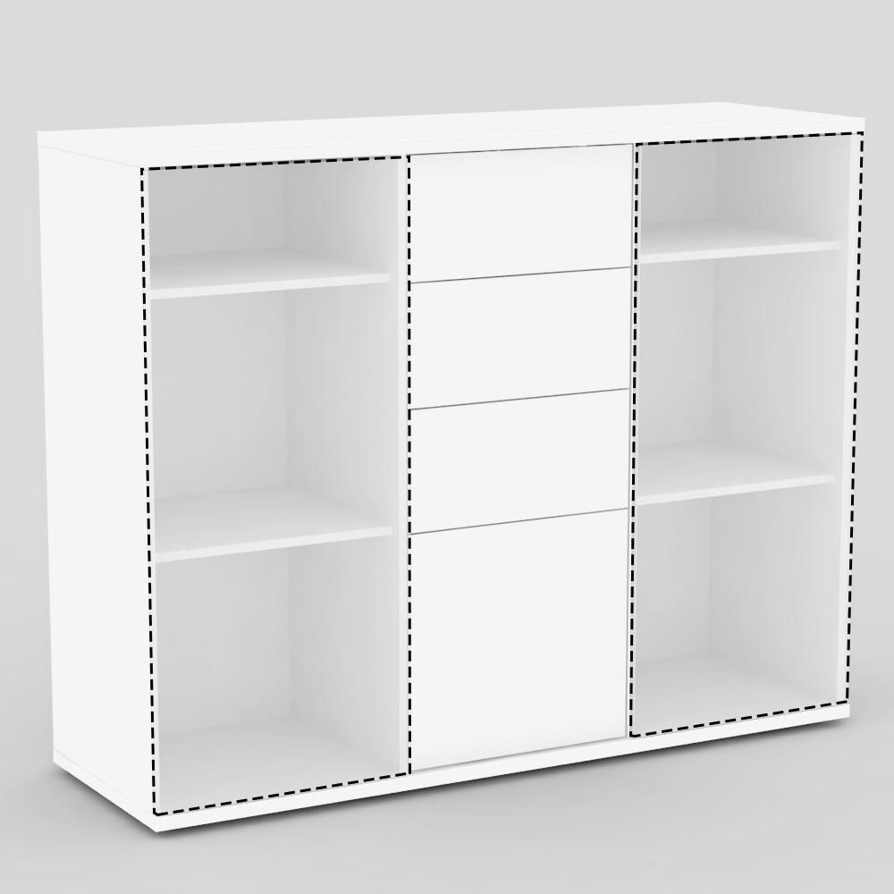 Korpusy skříněk, police a posuvné dveře je potřebné objednávat samostatně.