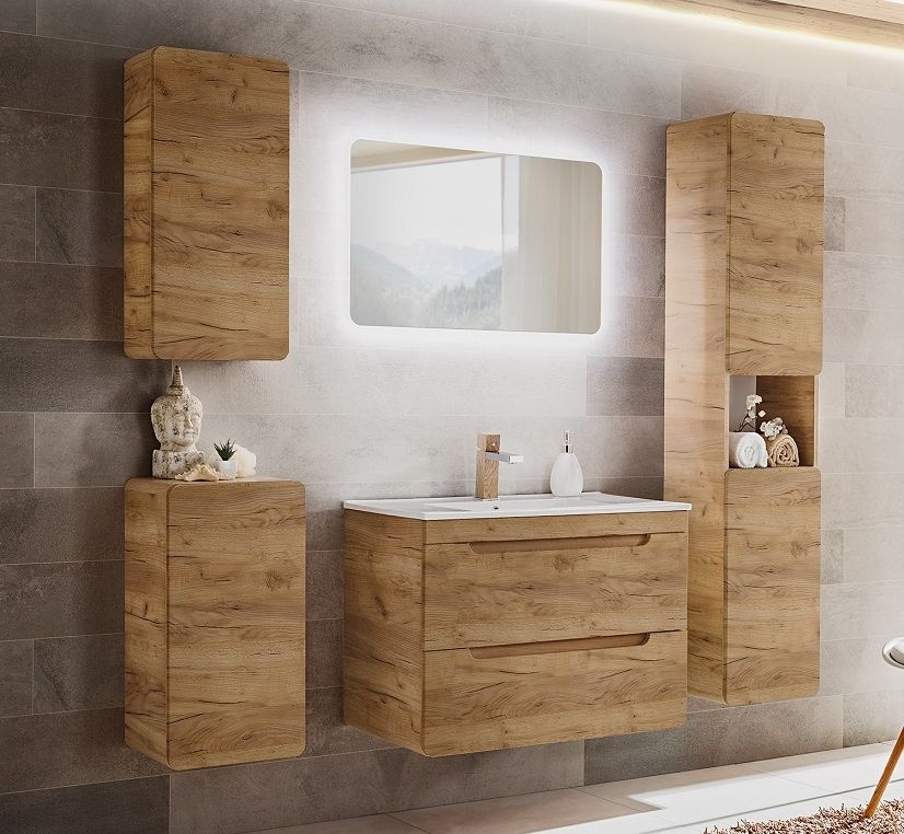 Arusa je neobvyklá sestava koupelnového nábytku, která působí svěžím a moderním designem. Dřevěný korpus v kombinaci s dřevěnými čely skříněk vytváří jemný celek. Zaoblené hrany všech skříní přinášejí sestavu originálního charakteru, lehkost a přední strany bez madel odkazují na nejnovější trendy v interiérovém designu. Kolekce se skládá z nízkých a vysokých skříněk v různých variantách, které vám umožní sestavit individuální a jedinečnou sestavu. Nepochybně zajímavým a velmi módním řešením je skříňka pro umyvadlo. Zrcadlo je dokonalým doplňkem sestavy, která dává celé sérii moderní charakter. Sestava Arusa osloví všechny, kteří hledají pozoruhodné a moderní řešení pro svou koupelnu. Dvířka univerzální, možnost zvolit pravé nebo levé.